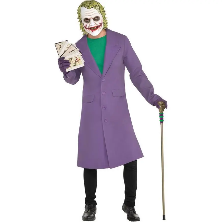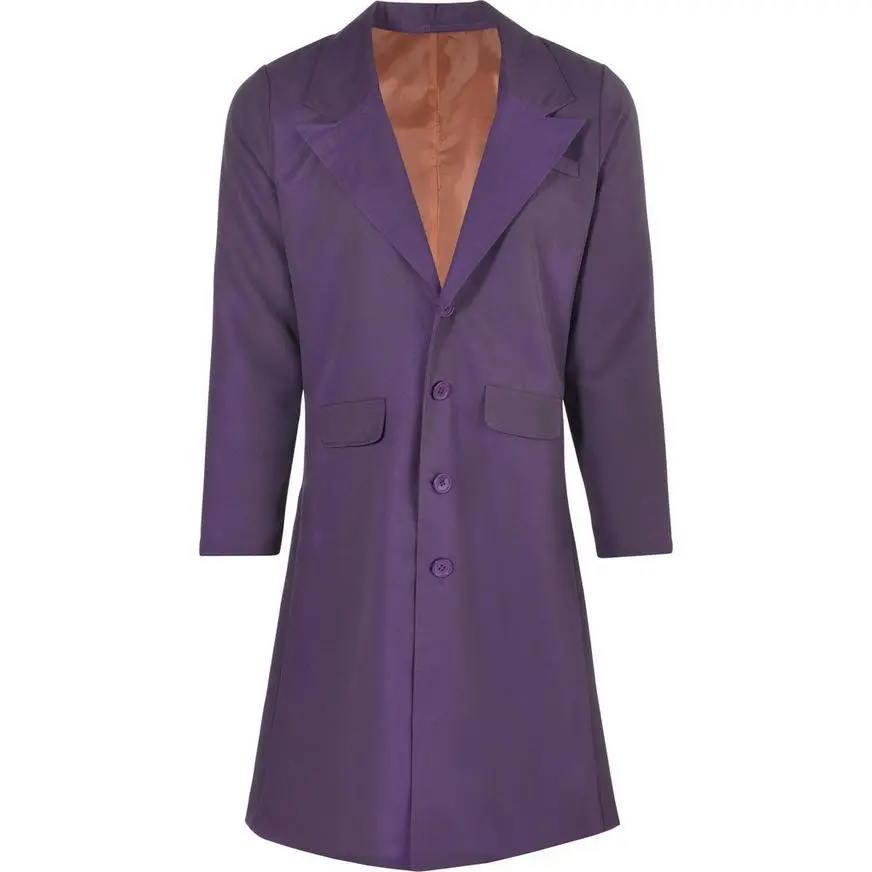 You’ll put a smile on their faces when you show up in a Joker Jacket for adults. This long purple jacket, inspired by The Dark Knight 3, has a distressed, stained look, faux pockets, and functional values down the front for easy closure. Whether you’re part of a group Batman costume or are creating your own Joker costume, this fully-lined purple jacket is an essential Joker accessory as you terrorize Gotham on Halloween night! Shoes, wig, shirt, and pants not included.