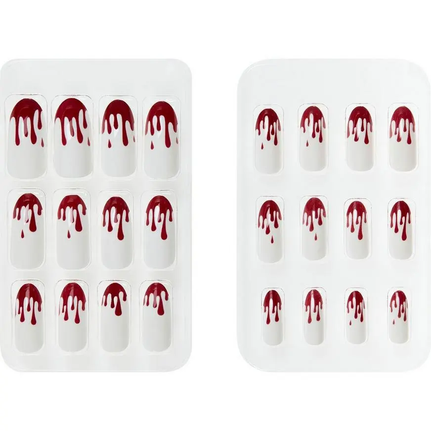 Better flee the scene of the crime when you wear these Bloody Nails to the costume party! These fake nails are white with red blood splatter designs. You can use these nails as part of a serial killer costume, twisted nurse costume, zombie costume, or any other costume idea. You’ll have blood on your hands on Halloween when you accessorize with these nails!