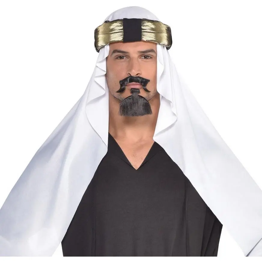 Lead the costume party to a great time while wearing a Desert Prince Head Scarf! This large white polyester head scarf includes a stuffed gold headpiece. Pair this head scarf with a long robe (sold separately) to create your own desert prince costume. You’ll be the leader of the Halloween party when you dress up with this head scarf! Robe and facial hair not included.