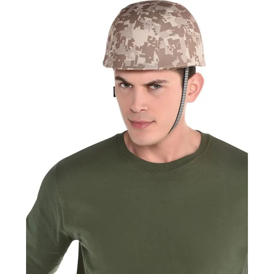 This gray camouflage, fabric-covered Army Helmet is a hardy addition to any soldier costume. The hard plastic shell gives it structure and authenticity, while the nylon chinstrap allows for an adjustable fit. A band inside the helmet can also be adjusted for maximum comfort.