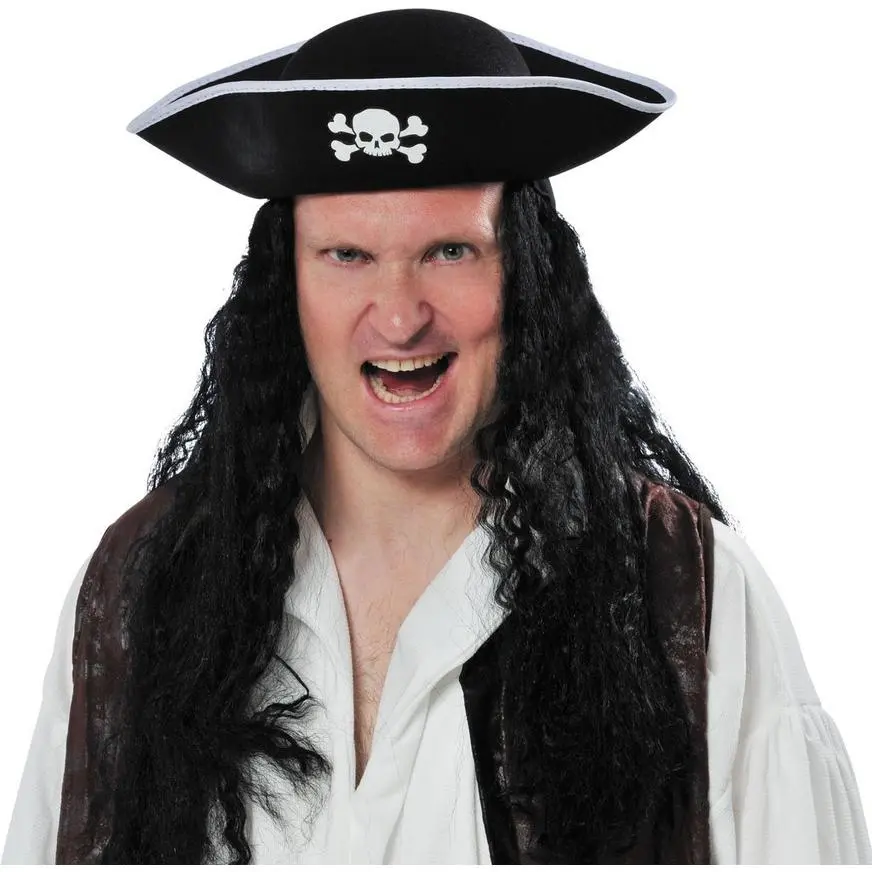 Pillage and plunder and look good while you do. Whether you’re raiding the fridge or a fat cargo ship, this Black Pirate Hat helps to keep you in character. The molded felt hat offers tricorn styling, a skull and crossbones emblem on the front, and white trim around the upturned brim for a bit of pirate panache. The affordable price is a steal — how fitting for your profession!