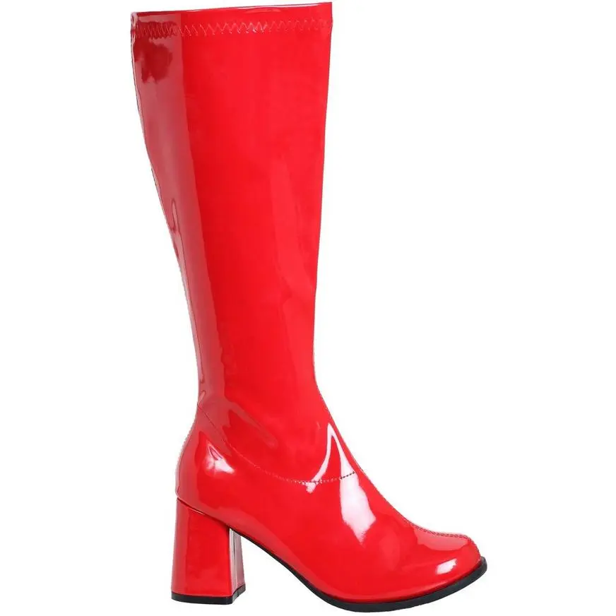 Bring a sexy ’60’s vibe this Halloween in your Red Go-Go Boots. Do the mashed potato do the twist and look like a go-go girl gone modern. The boots have a side zipper and 3-inch heels for a full night of shimmy and shake. Review the size chart for additional sizing information. Red Go-Go Boots product details: 16in tall Heels 3in tall 100% polyurethane Spot clean only