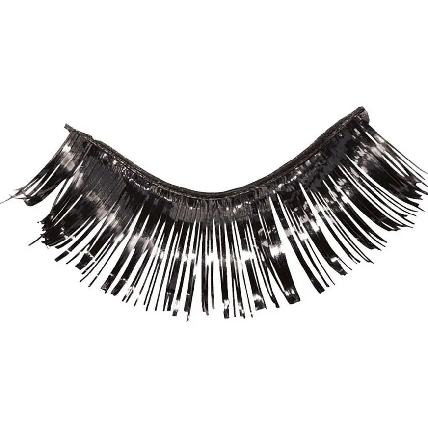 Get fancy, flirty, and fun with Self-Adhesive Black Tinsel False Eyelashes! These shiny false lashes made of tinsel add drama to rave-wear and attention-grabbing outfits. With no need for messy glue, these self-adhesive eyelashes are easy to apply and remove. Stick these over your peepers to accessorize a costume or fan gear to cheer on your favorite sports team!