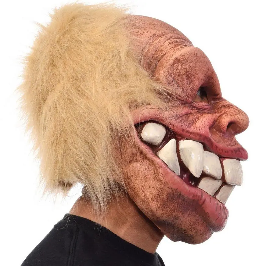 Be a happier monster this Halloween as smiling Myles, the monster with miles of smiles! This natural latex mask features a large grin of pearly whites and attached rough blond hair. The mask is lightweight and comfortable with great sight lines through the open eye holes.